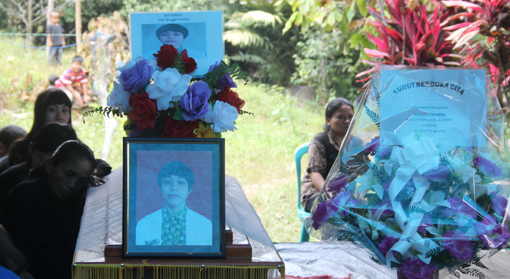 Usai digelar upacara pemakan, sekitar pukul 02.00 wita, jasad korban langsung dibawah kepemakaman umum Kabo, Ratusan warga dan keluarga mengantarkan jazad bongga hingga ke tempat peristirahatan terakhirnya. (WAL)