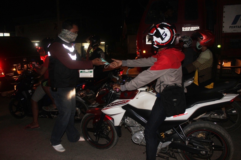 “Jangankan siang hari, pada malam hari saja kabut asap semakin pekat. Padahal banyak pengguna kendaraan roda dua juga melakukan aktifitas di saat malam, untuk itulah kami berbagi masker bersama rekan-rekan bikers lainnya,” ungkap pria berkepala plontos ini. Aksi Bikers Buhay MC dan Byonic Sangatta  sendiri dilakukan di Simpang Tiga Yos Sudarso dan Jl Pendidikan. (SHD)