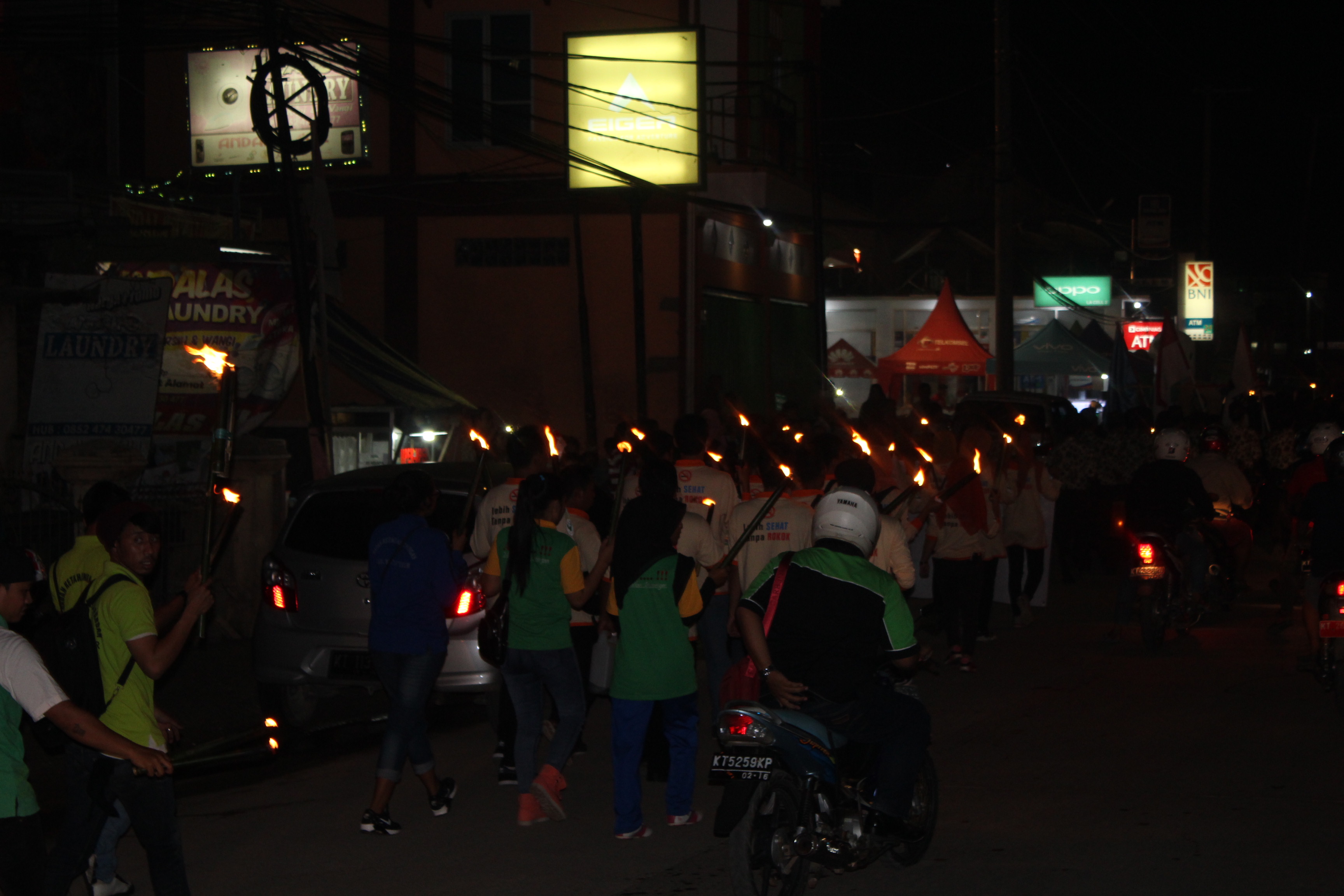 Di mana para peserta pawai yang terdiri Mahasiswa,,pegawai di lingkungan Pemkab Kutim, TNI dan Polri, mulai dari simpang tiga pendidikan pada pukul 19.00 wita. Pawai yang dikuti sekitar 500 orang itu dilepas langsung bupati Kutai Timur Ismunandar.