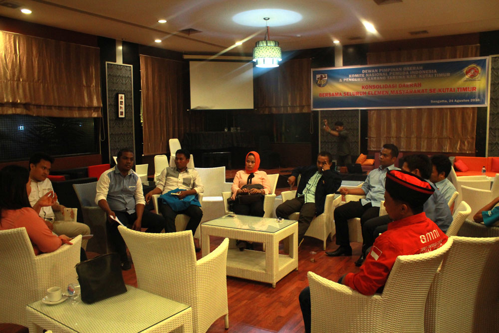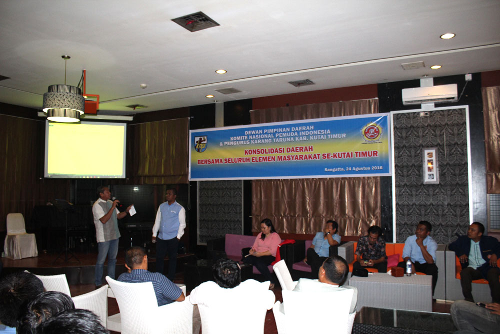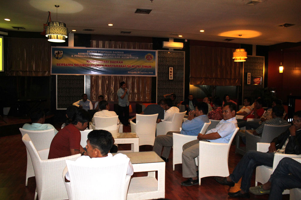 Sangatta, Dewan Pimpinan Daerah Komite Nasional Pemuda Indonesia (DPD KNPI) dan Karang Taruna Kutai Timur, mengadakan konsolidasi dengan seluruh elemen masyarakat setempat, di Hotel Royal Victoria, kamis (24/8) malam.