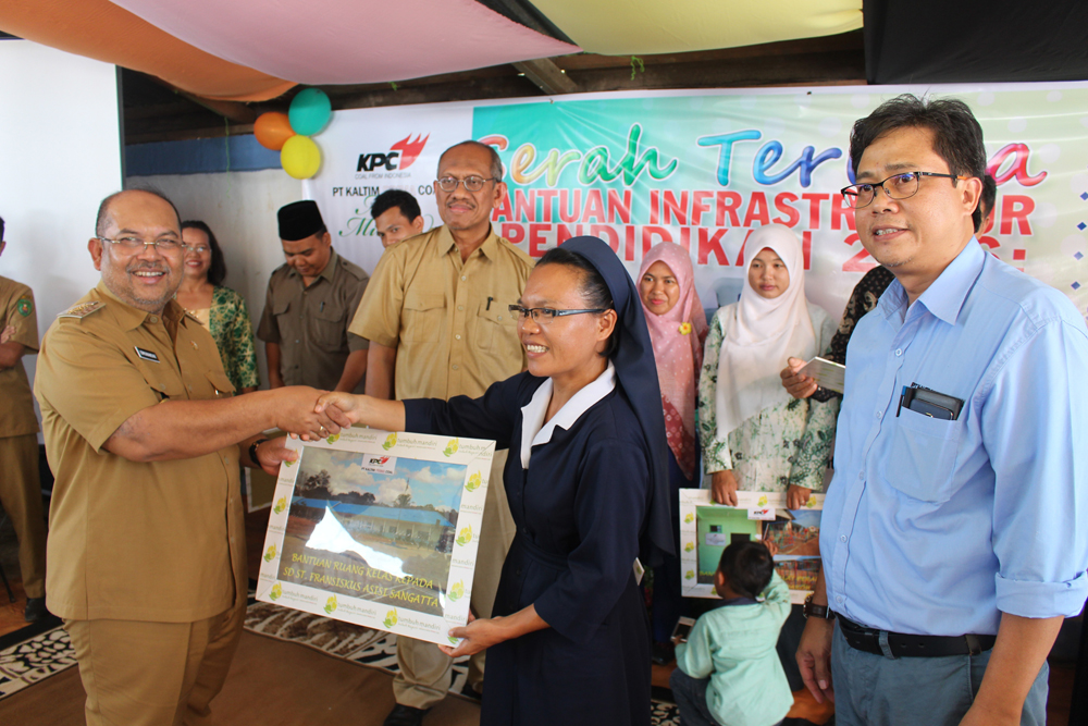 Prosesi serah terima itu dilangsungkan dari General Manager External Affairs and Sustainable Development (GM ESD) Wawan Setiawan kepada Bupati Kutai Timur Ir Ismunandar, ST. MT. Selanjutnya, Bupati menyerahkan secara simbolis kepada 11 sekolah penerima bantuan.  Secara total anggaran yang dialokasi KPC senilai Rp 1,2 miliar lebih.