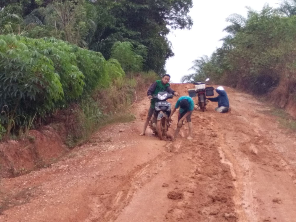 Dia menjelaskan, akses jalan menuju desa tersebut kondisinya sangat parah jika terjadi hujan.  Bahkan jalan satu-satunya untuk menuju akses ke dalam desa sering pula dilalui oleh mobil karyawan sawit. Namun tak kunjung ada perbaikan yang dilakukan pihak perusahaan sawit.”kalau kondisi kering jalan kami berdebu, itulah yang kami alami warga didesa kami,”keluhnya.