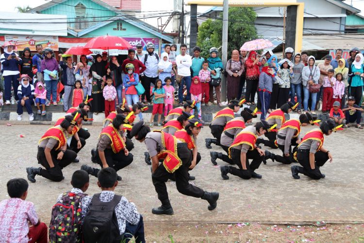 Polres Kutim ini saat melakukan atraksi di tengah jalan saat ikut lomba gerak jalan, Kamis (20/10). [humas pemkab Kutim]