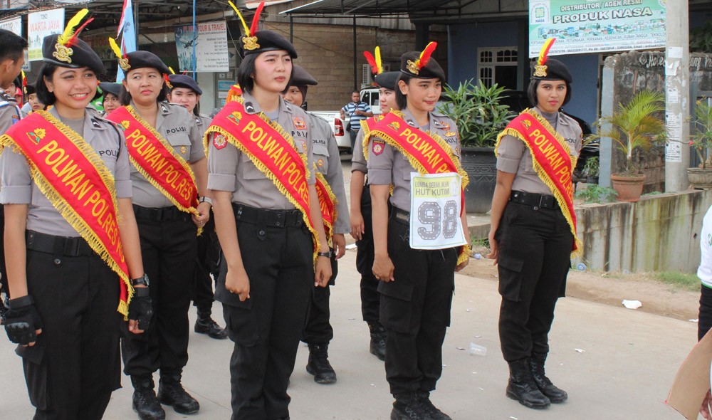 WARTAKUTIM.com, SANGATTA – Polwan Polres Kutim, salah satu regu peserta lomba gerak jalan yang digelar pemkab Kutim dalam rangka memeriahkan HUT Kutim ke 17, menarik perhatian warga khususnya bagi para kaum pria. Pasalanya, mereka yang ikut dalamlomba gerak jalan itu merupakan polwan muda dan cantik.