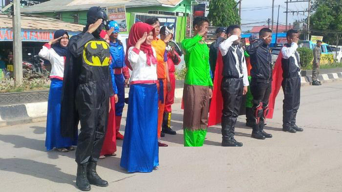 Peserta lainnya yang menyita perhatian warga adalah regu cosplay yang mengenakan kostum super hero. Peserta tersebut merupakan binaan wakil bupati Kutim Kasmidi Bulang.