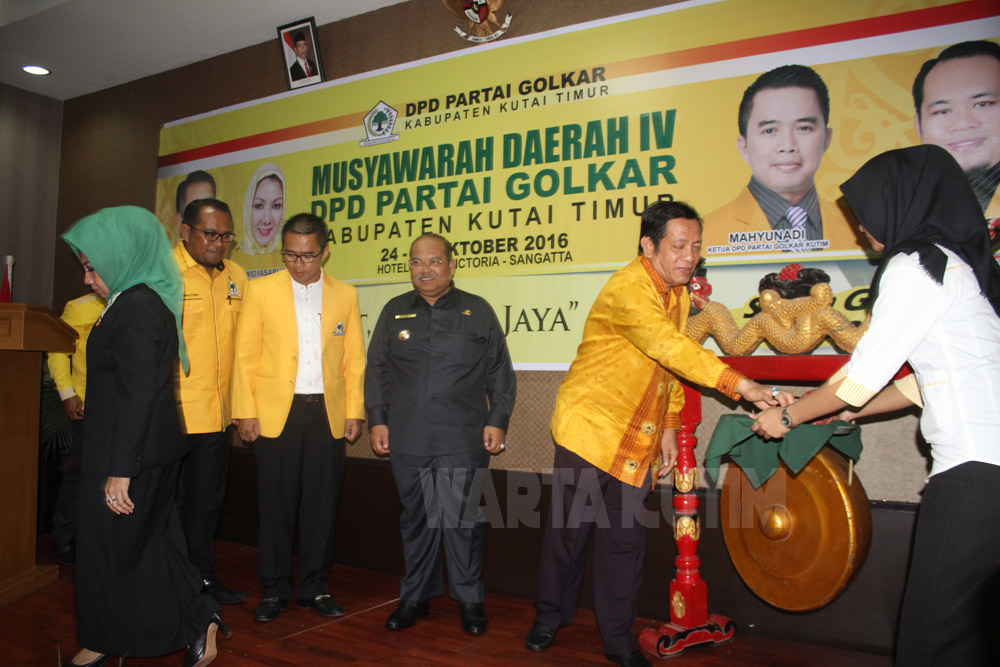 WARTAKUTIM.com, SANGATTA – Wakil bupati Kutai Timur Kasmidi Bulang, ST, MM terpilih secara sebagai Ketua Dewan Pimpinan Daerah (DPD) I Partai Golkar Kabupaten Kutai Timur dalam Musyawarah Daerah (Musda) IV Partai Golkar yang berlangsung di Hotel Royal Victoria Sangatta, Senin (29/10/2016).