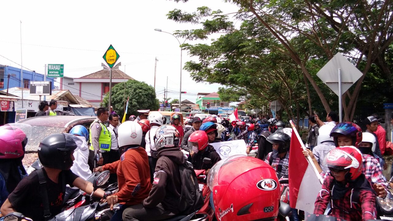 Tak mampu melalui barekade polisi yang dijaga ratusan aparat dari polres Kutim dan Satlantas Kutim, mahasiswa akhirnya kembali ke kampus Stiper di Jalan Soekarno Hatta.