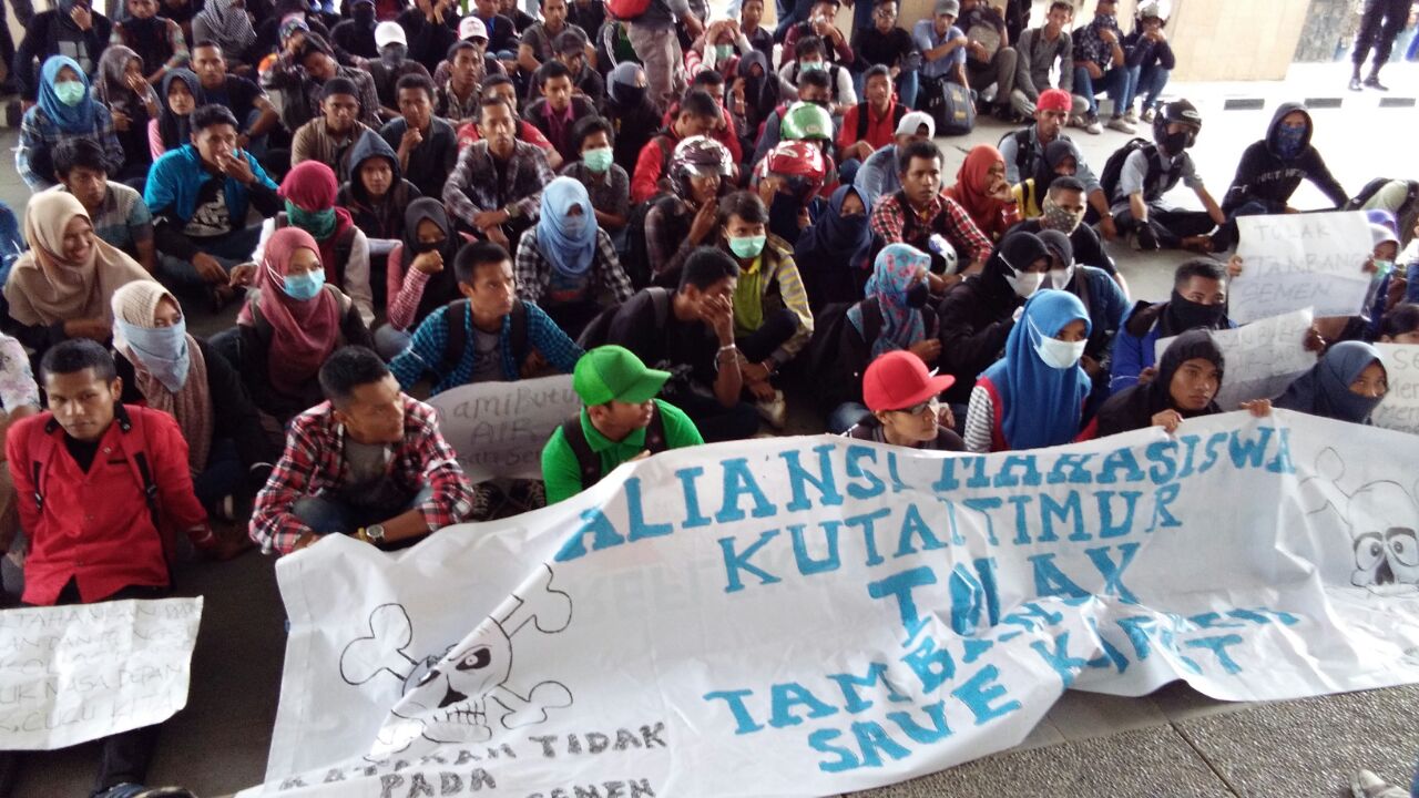 Meskipun telah dibubarkan oleh pihak kepolisian. Namun, ratusan mahasiswa kembali menggelar aksinya dengan mendatangi kantor bupati Kutim di Bukit pelangi Sangatta sekitar pukul 14.00 wita.