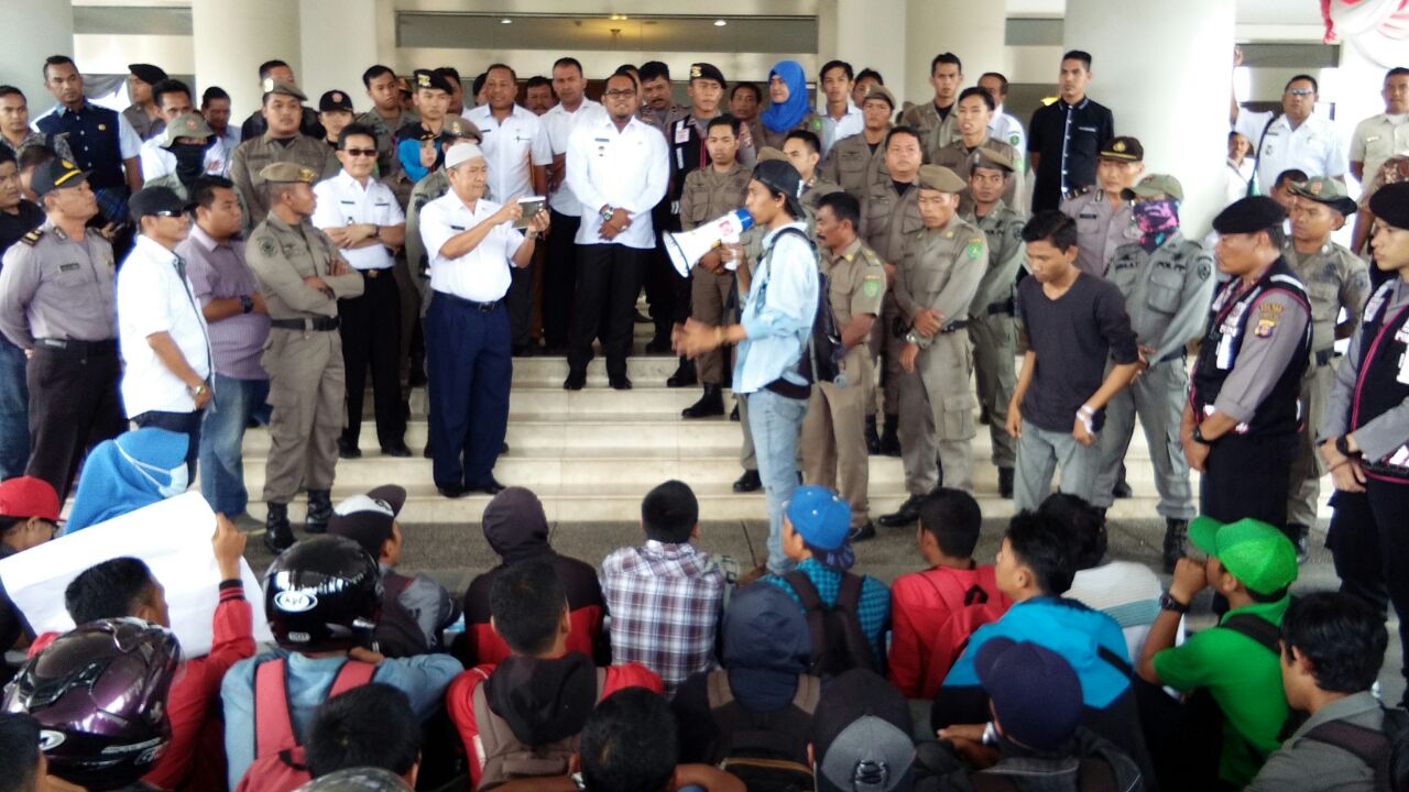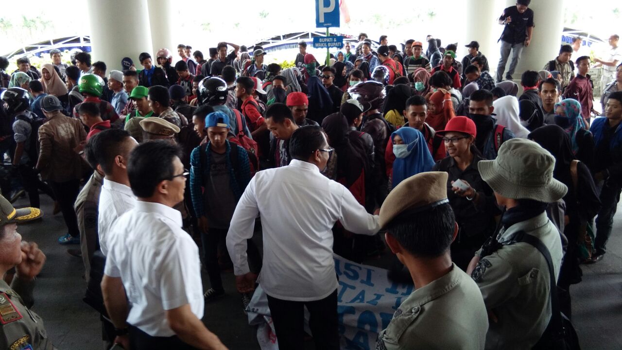 Aksi didepan kantor bupati itu dikawal ratusan aparat dari kepolisian dan Satpol PP. Dalam aksi itu mahasiswa menginginkan bupati dan wakil bupati untuk menemui pengunjuk rasa.  Setelah berapa lama menggelar unjuk rasa, mahasiswa akhirnya ditemui langsung Wakil Bupati Kutim Kasmidi Bulang. (WAL)