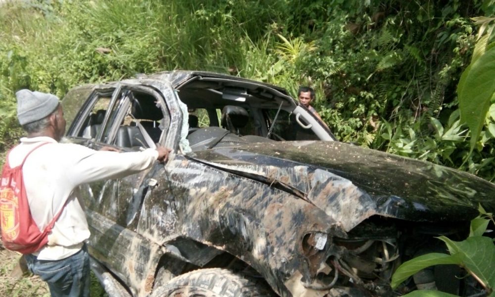 Usai menghantam bagian belakang kendaraan Hilux, mobil yang ditumpangi Assisten I Mugeni pun langsung oleng dan terguling hingga beberapa kali sejauh 50 meter. Mobil pun baru berhenti setelah masuk kedalam jurang disisi jalan sedalam 1,5 meter dengn kondisi rusak parah.