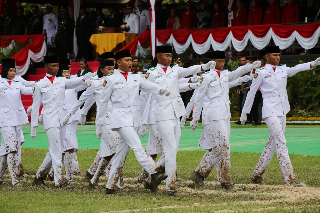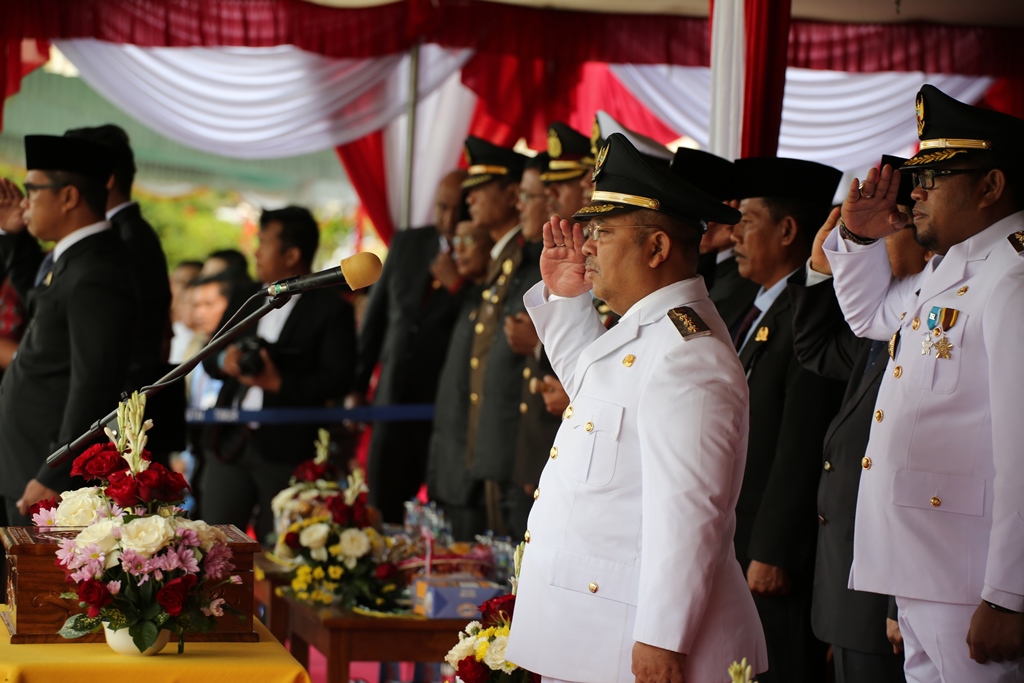 SANGATTA- Detik-detik peringatan proklamasi kemerdekaan pada Hari Ulang Tahun (HUT) ke 72 Republik Indonesia (RI) di Kabupaten Kutai Timur (Kutim) berlangsung lancar dan khidmat, Kamis (17/8).