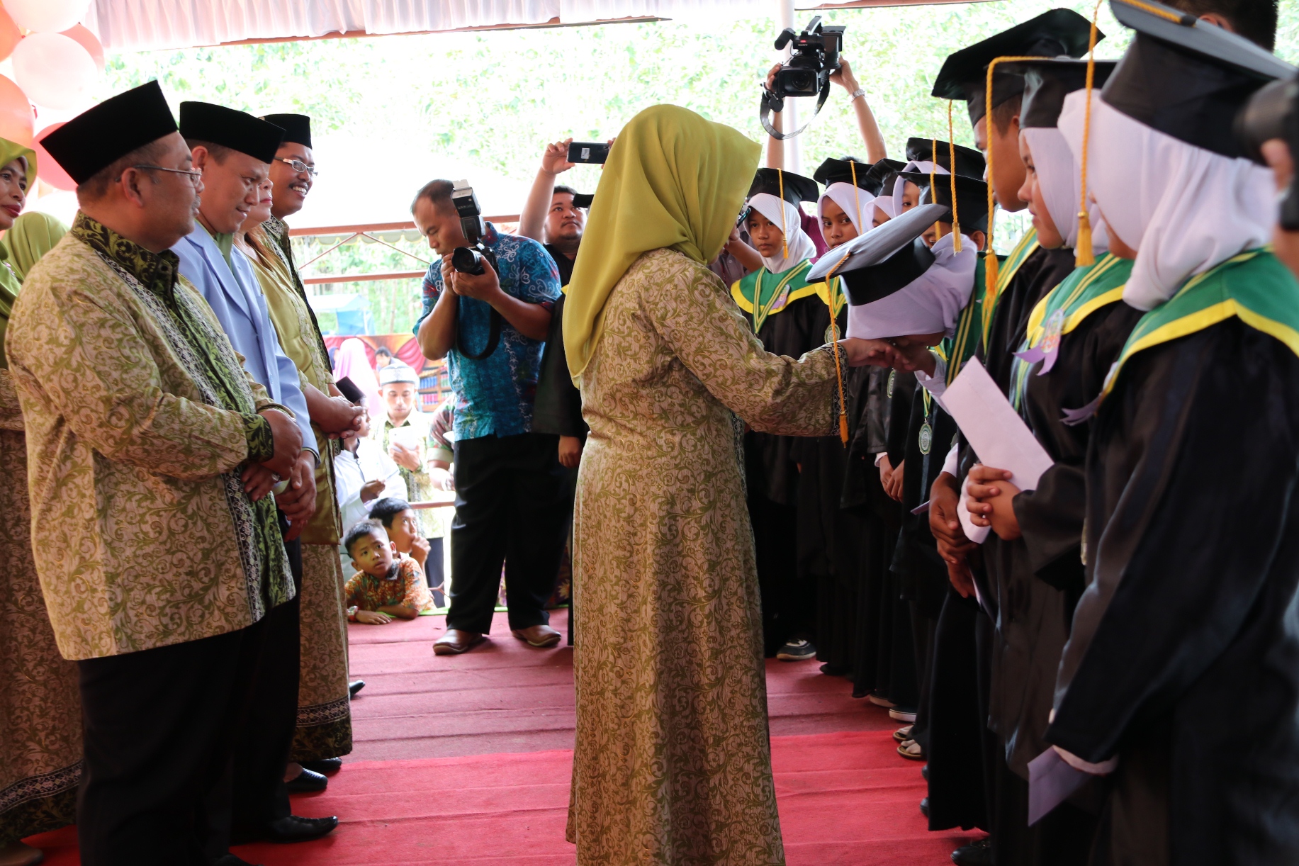 Prosesi wisuda berlangsung di halaman Kantor Camat Teluk Pandan Sabtu, (16/9) dan dihadiri Bupati Ismunandar, pengurus Dewan Pimpinan Daerah Badan Komunikasi Pemuda Remaja Masjid Indonesia Kabupaten Kutai Timur (DPD BKPRMI) juga hadir Sekertaris Dinas Pendidikan Roma Malau, Kepala Bagian Sosial Andi Abd Rahman.