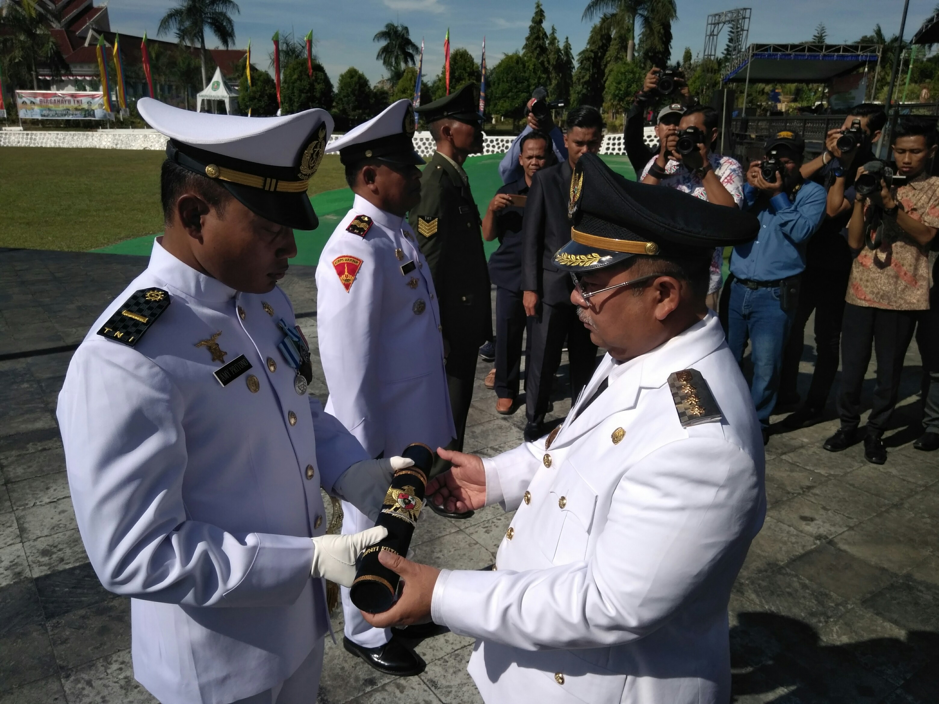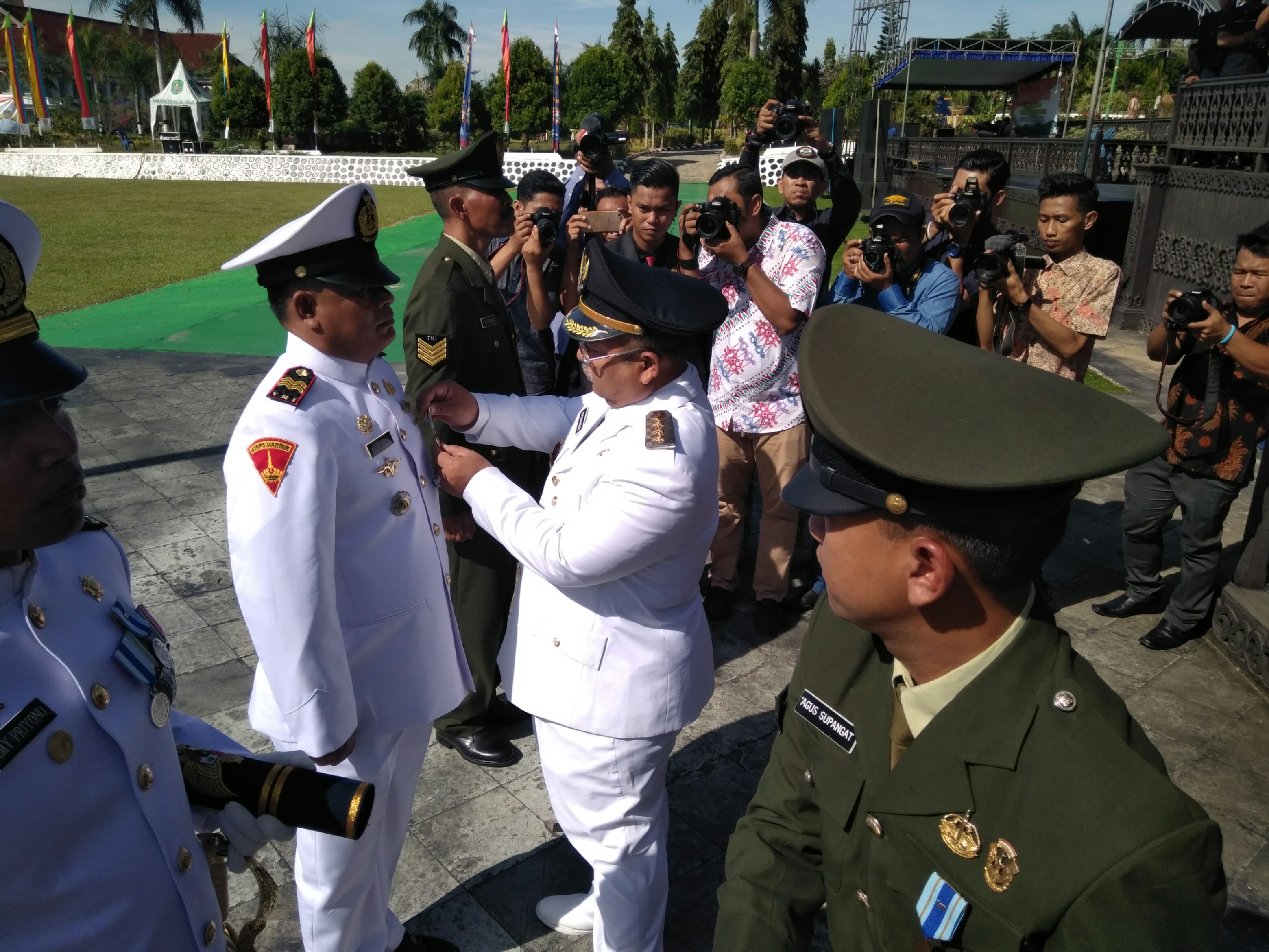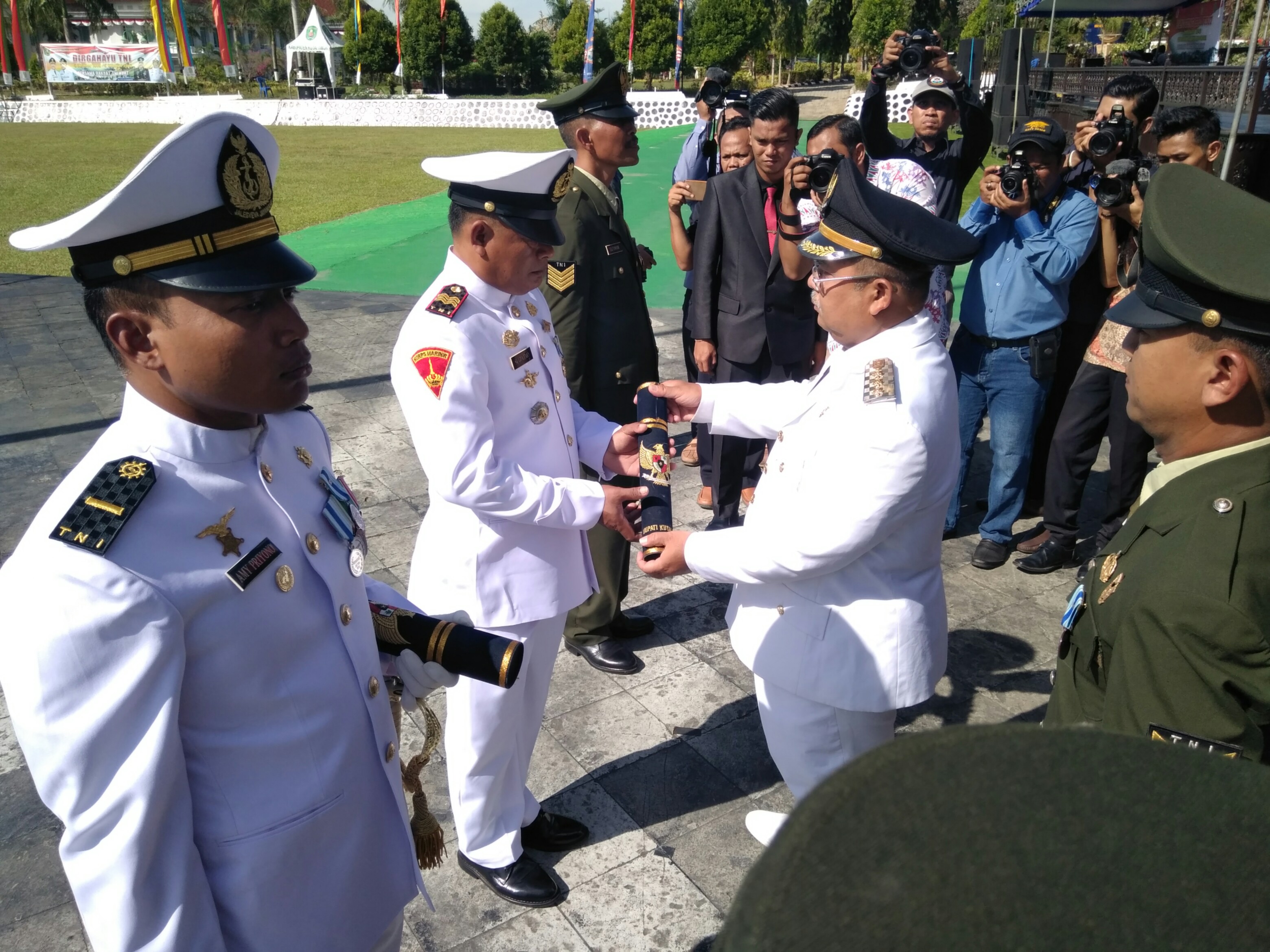 WARTAKUTIM.co.id, SANGATTA– Pada upacara peringatan HUT Tentara Nasional Indonesia (TNI) ke 72 di Kabupaten Kutai Timur (Kutim),Bupati Ismunandar menyematkan tanda kehormatan Republik Indonesia kepada prajurit atas darmabakti dan kesetiannya kepada TNI, bangsa dan Negara,Kamis 5/10 di halaman kantor bupati.