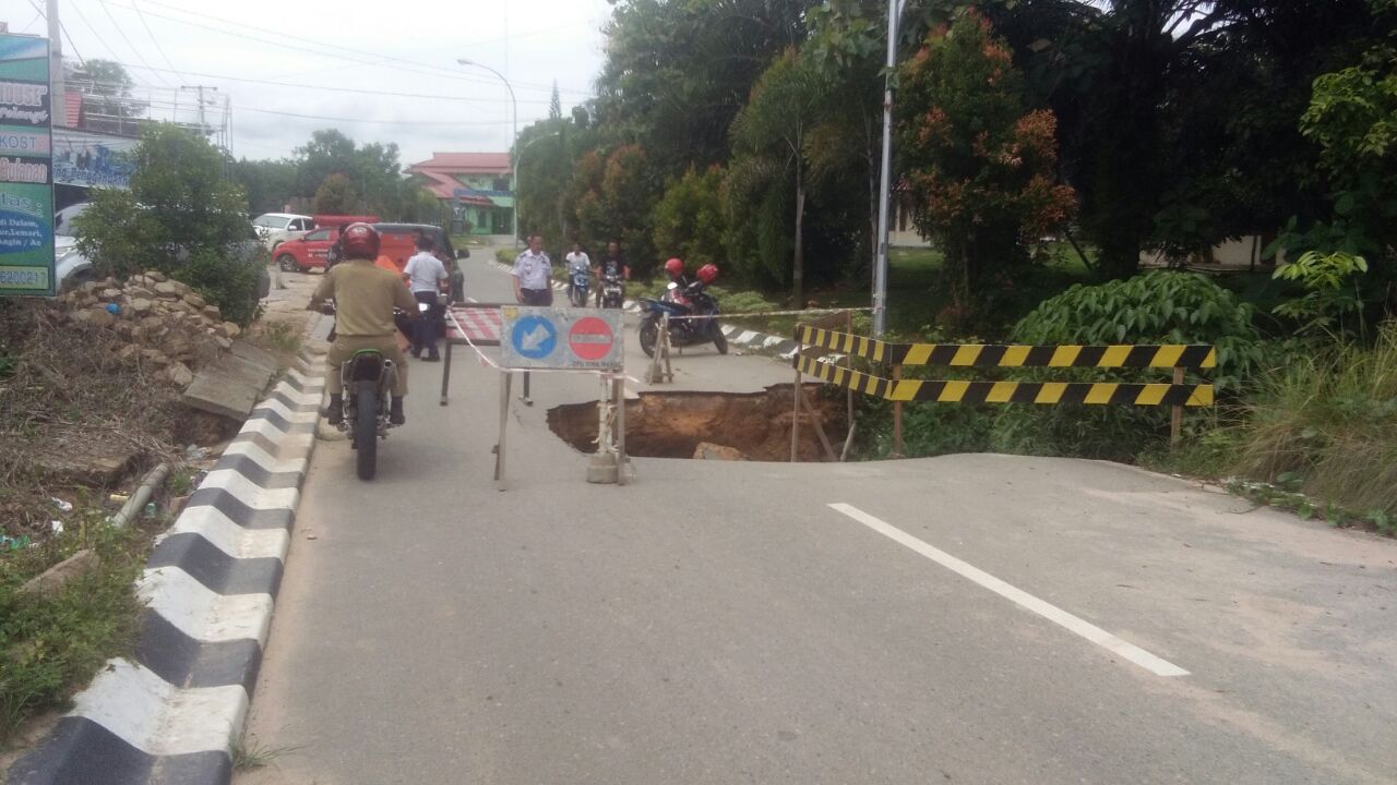 Jalan Aspal Dibelakang Pengadilan Negeri Sangatta Amblas, DPU Kutim Segera Turun Tangan