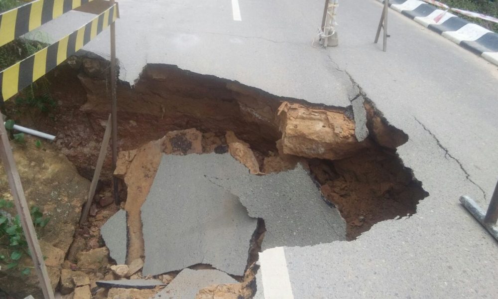 WARTAKUTIM.CO.ID – Jalan Prof DR Wirjono Prodjodikoro Bukit Pelangi, tepatnya di belakang kantor Pengadilan Negeri Sangatta, Kutai Timur tiba tiba Amblas, pada Senin (29/1/2018).