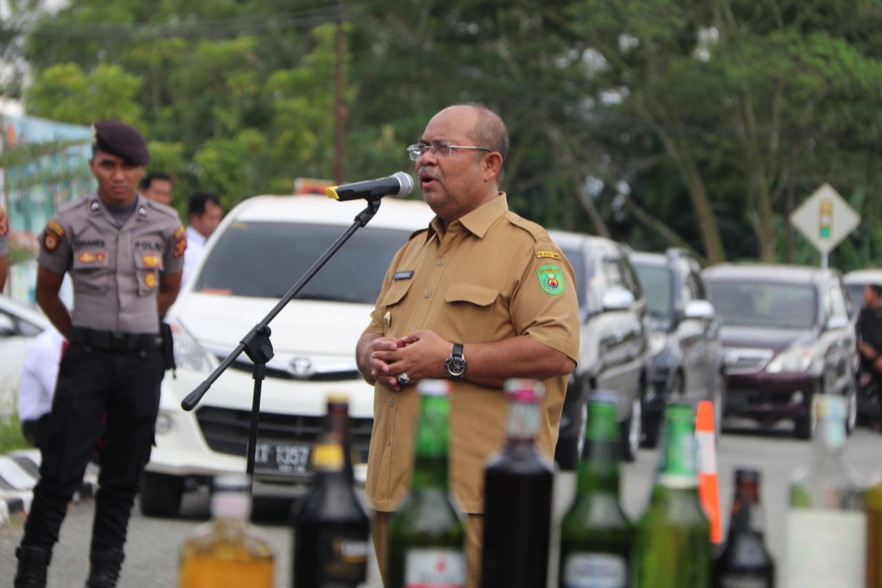 Pada kesempatan itu, Bupati Ismunandar mengawali pemusnahan miras dengan melemparkan botol miras ke tempat yang sudah ditentukan. Kemudian diikuti Wakil Bupati Kasmidi Bulang, Wakapolres Kompol Supriyanto, Dandim 0909 Letkol Inf Kamil Bahren Pasha, Danlanal Letkol Mulyan Bus karya dan unsur FKPD lainnya dan dilanjutkan dengan pemusnahan menggunakan oto malas.