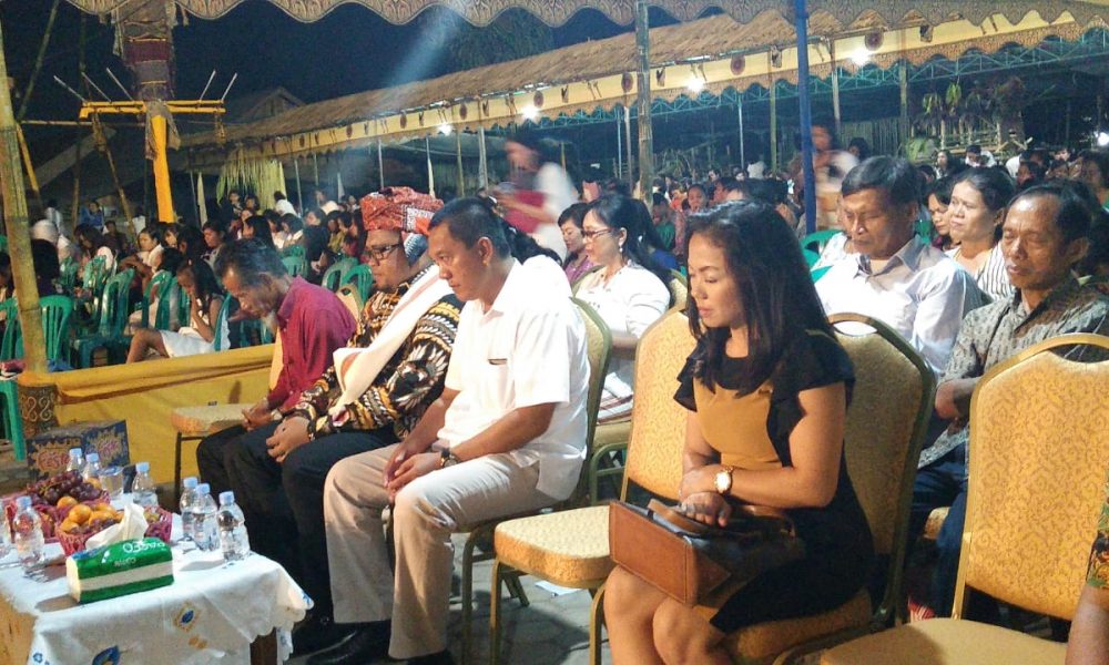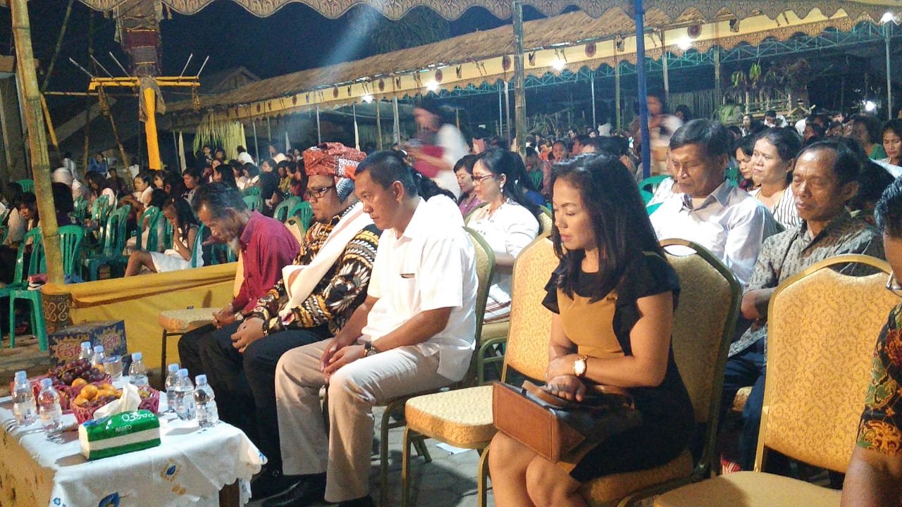 Wakil Bupati mengenakan sarung diapit Pdt Obet Langdeng Sth (baju merah) dan Pdt David Rante STH (baju putih) saat pembukaan acara pentahbisa Gereja Marendeng
