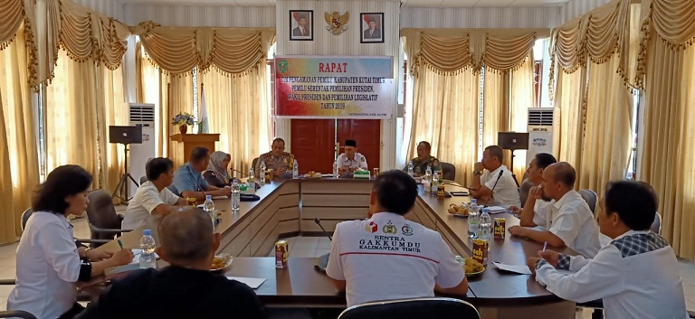 Suasana rapat kordinasi Tim Pengamanan Pemilu Kutim Serentak Pemilihan Presiden, wakil Presiden, dan pemilihan Legislatif 2019 di ruang Rapat Badan kesatuan Bangsa dan Politik Kabupaten Kutim. (Foto: Ist)