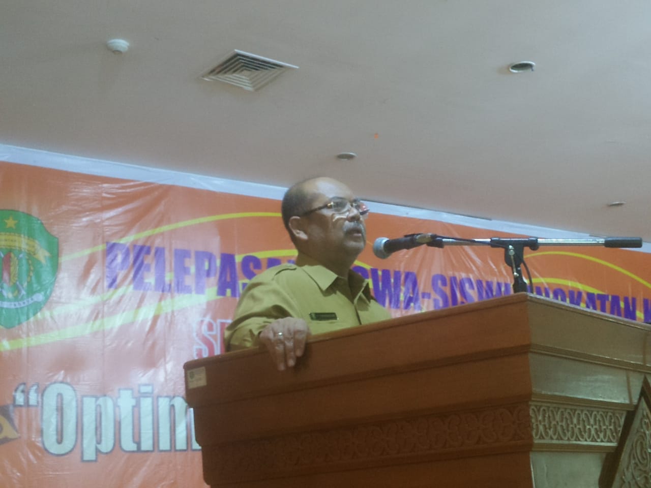 SANGATTA – Pelepasan Siswa – siswi angkatan ke X SMAN 1 Sangatta Selatan dihadiri langsung oleh Bupati Kutai Timur H Ismunandar, Selasa (22/4/2019). Terlihat Plt Kepala Dinas Pendidikan Roma Malau ikut mendampingi di Gedung Serba Guna, Pusat Perkantoran Pemkab Kutim. Pelepasan peserta didik bertajuk “Optimis Melangkah, Meraih Bintang” tersebut juga dihadiri Pengawas Sekolah, Komite Sekolah, Para Kepala Sekolah yang ada di Sangatta serta orang tua siswa.