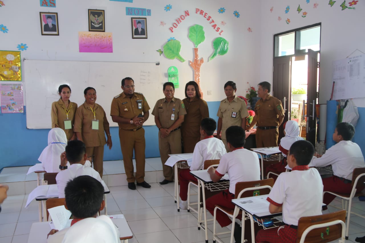 SANGATTA- Hari pertama pelaksanaan ujian sekolah untuk SD dan UNKB (ujian nasional berbasis komputer) bagi siswa SMP mendapat perhatian Wakil Bupati Kutim Kasmidi Bulang, Senin (22/4/2019). Wabup melakukan kunjungan ke SDN 002 Sangatta Utara dan SMPN 1 Sangatta Utara.
