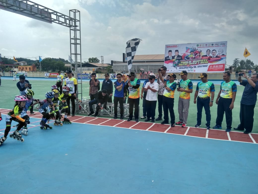 SANGATTA- Wakil Bupati Kutai Timur ( Kutim), Kasmidi Bulang membuka Kejuaran Nasional dan Kejuaraan Daerah (Kejurda) Sepatu Roda serta Bupati Kutim CUP Open I 2019, di sirkuit sepatu roda, Sangatta pada (26/7/2019) yang berlangsung 25-28 Juli 2019 diikuti 193 atlet, 16 klub berasal dari Kaltim, Kalimantan Tengah, Jawa Tengah dan Jogyakarta dengan mengikuti 40 nomor tanding.