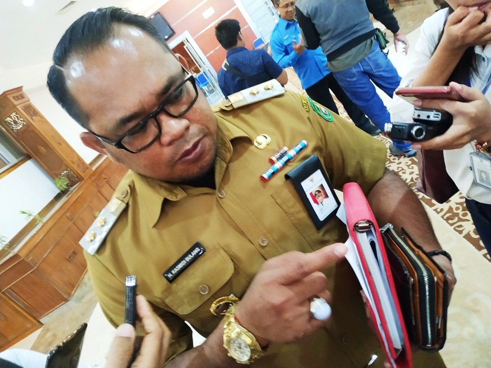 Wakil Bupati Kasmidi Bulang saat di wawancarai wartawan.