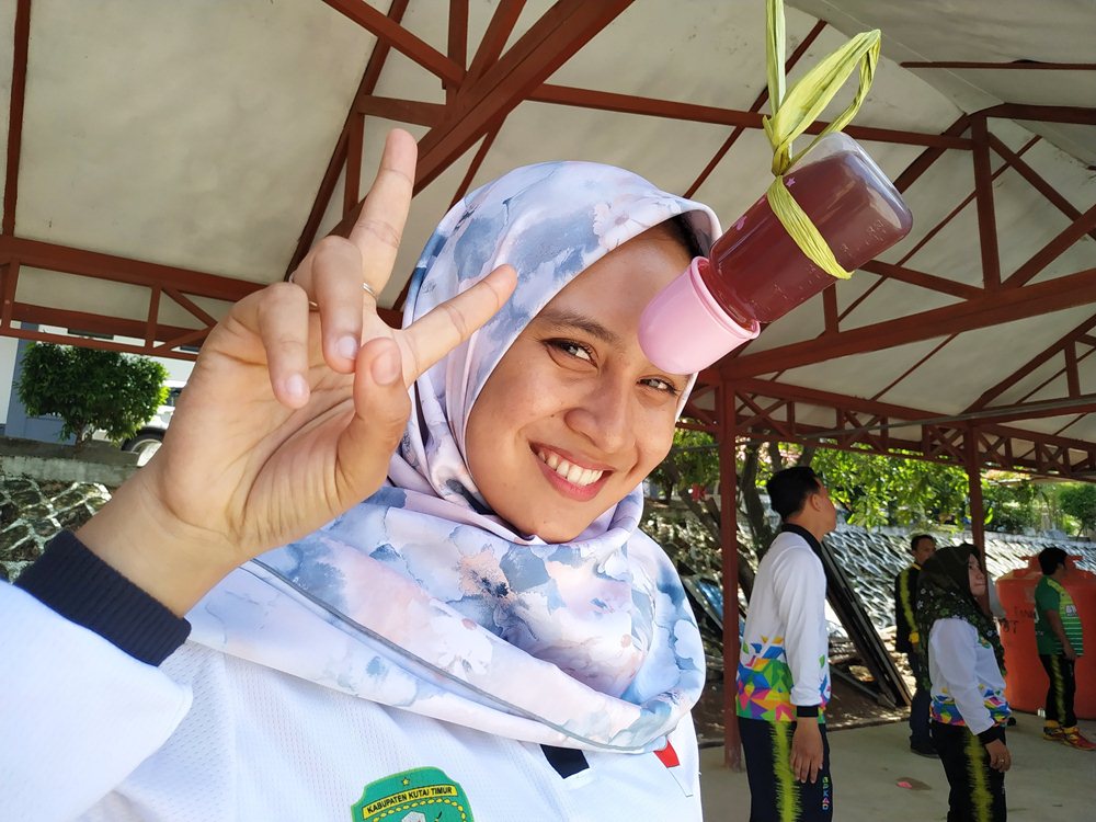 Salah-satu staf TK2D BPKAD memperlihatkan senyumnya, sebelum lomba dimulai.