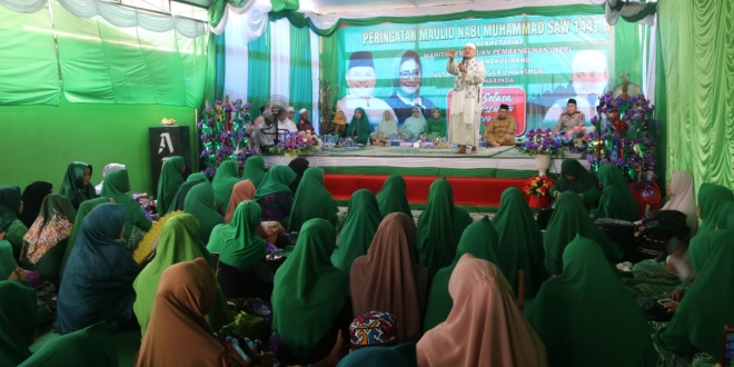 SANGKULIRANG – Ribuan kaum muslimah, Selasa (3/12/2019) hari ini memadati peringatan Maulid Nabi Muhammad SAW 1441 H, di Kantor Sekretariat Wanita Persatuan Pembangunan (WPP), di depan Masjid Ar-Rahmah, Desa Benua Baru Hilir, Kecamatan Sangkulirang.