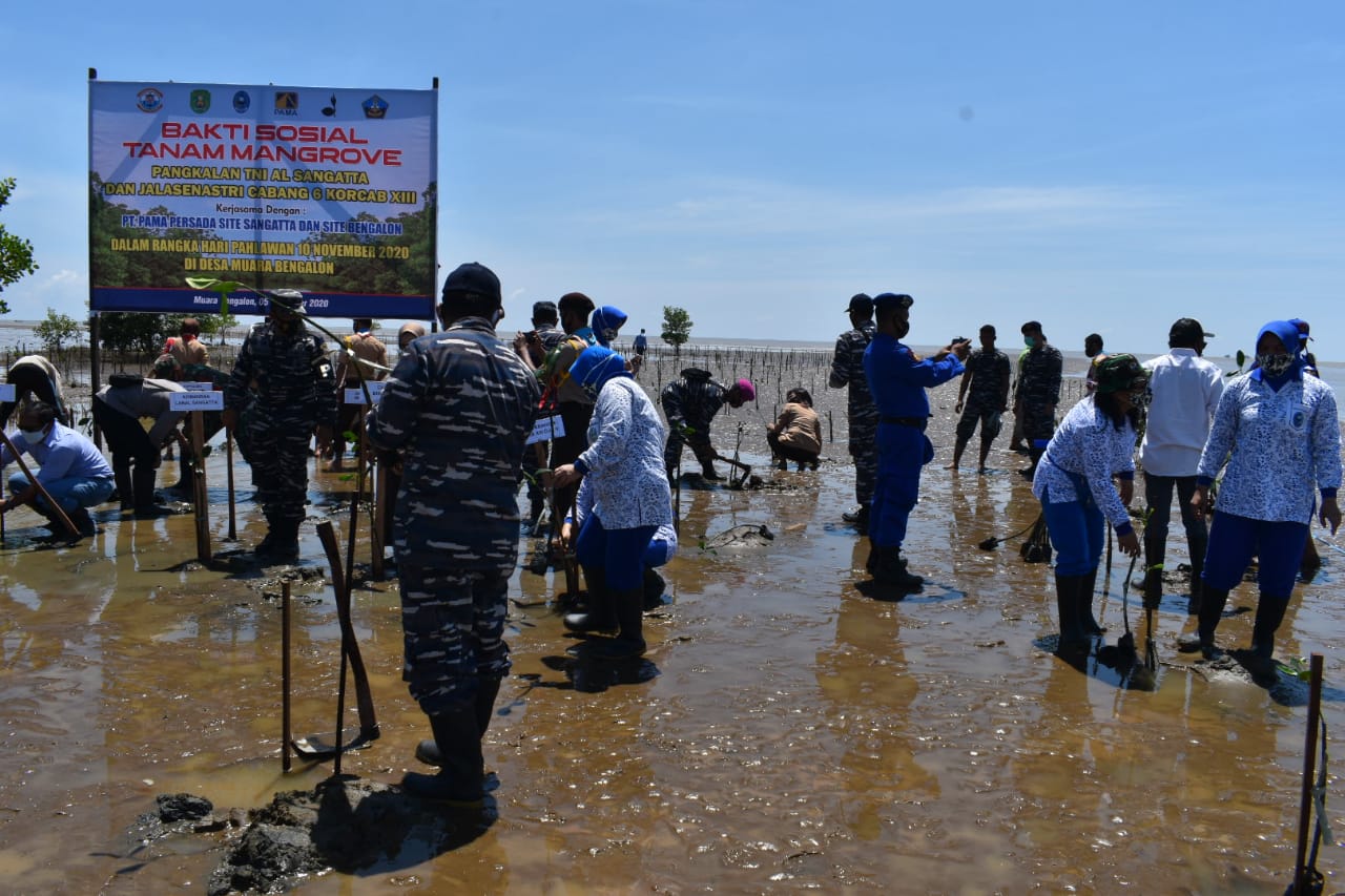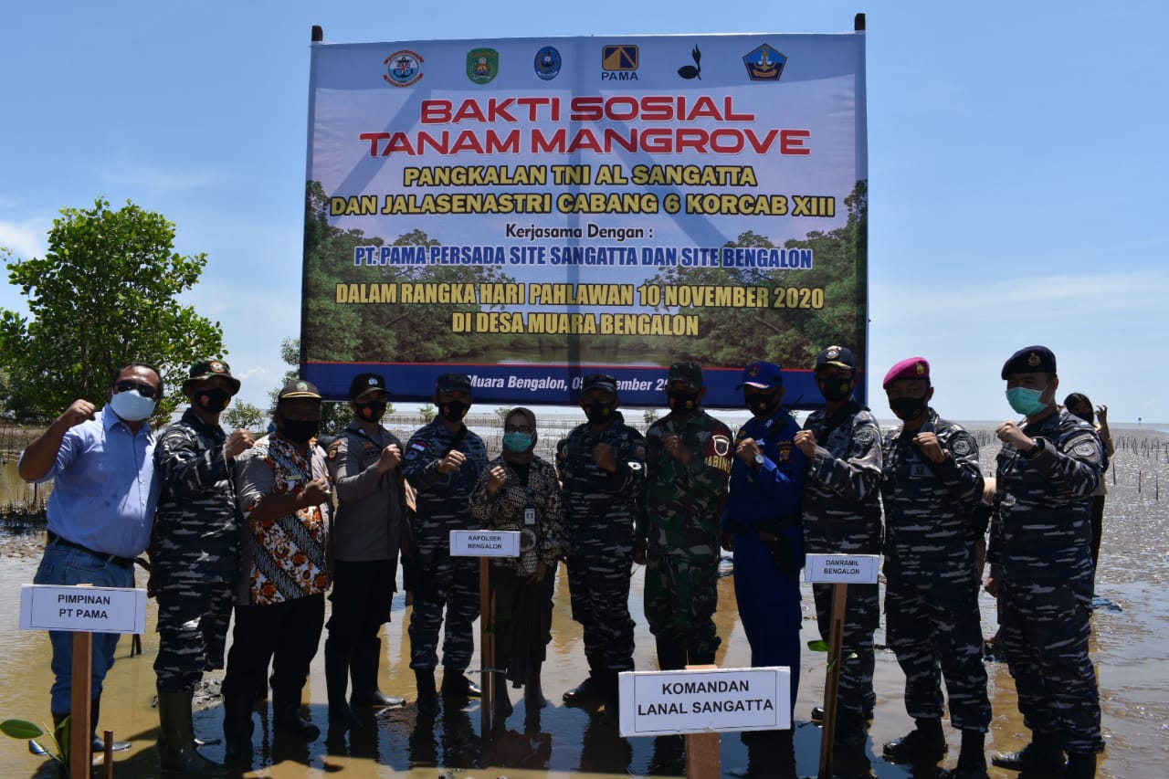 WARTAKUTIM.CO.ID, BENGALON – Pangkalan TNI Angkatan Laut (Lanal) Sangatta menggelar Karya Bhakti dengan penanaman sebaanyak 4.500 pohon mangrove di kawasan Mangrove di desa Muara Bengalon, Kecamatan Bengalon Kutai Timur (Kutim) pada Kamis (05/11/2020).