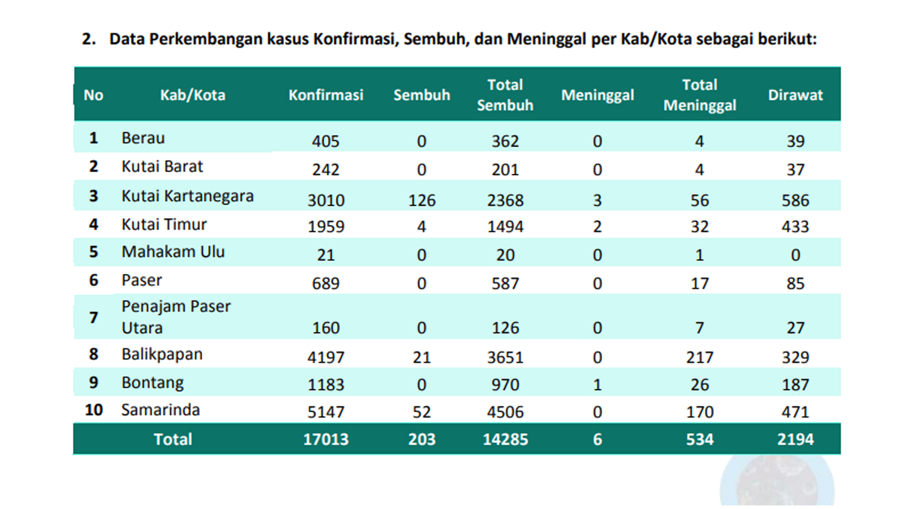 Kasus terkonfirmasi Covid 19 Di Kutim Menghampiri 2 Ribu Kasus. Bertambah dua Pasien Meninggal