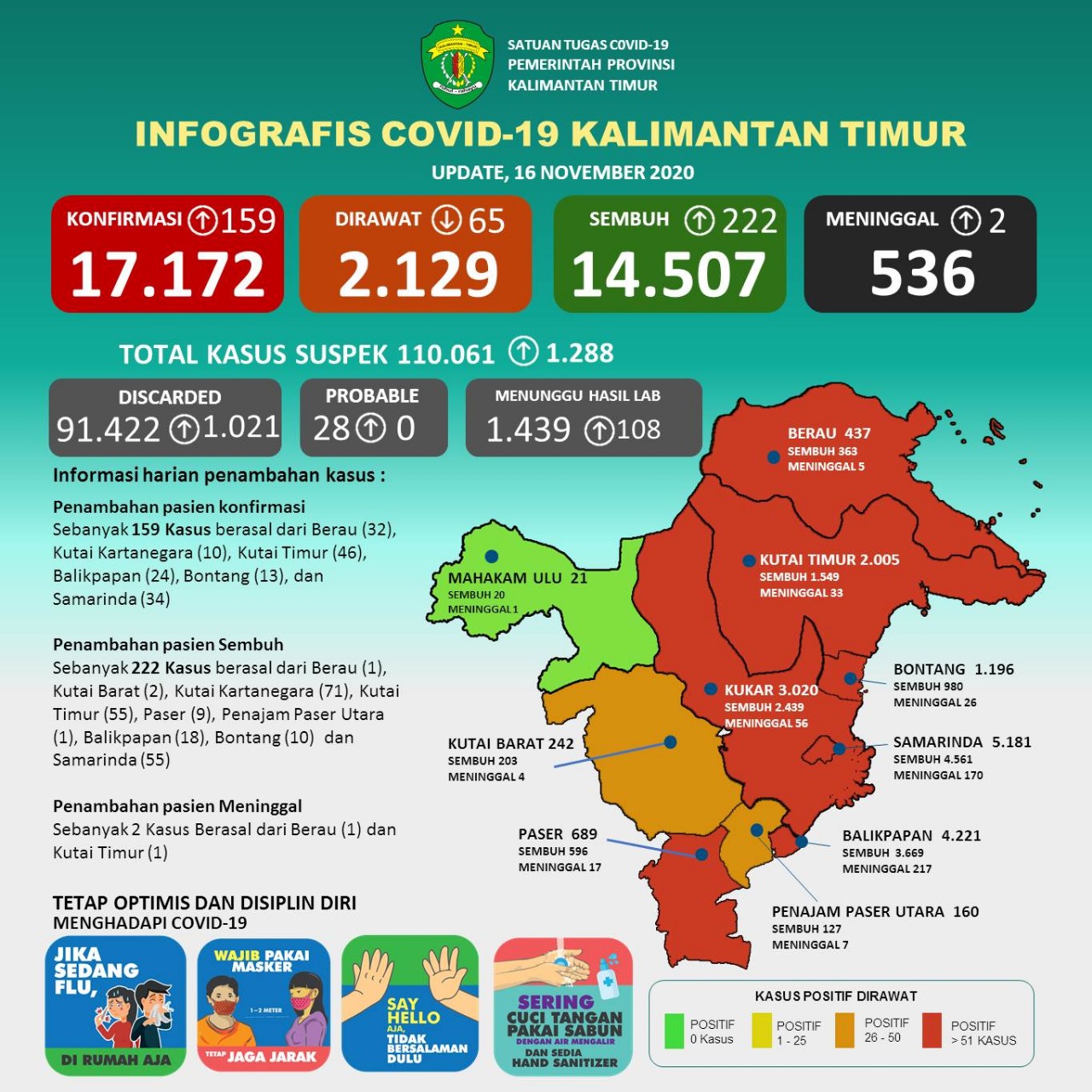 Hal tersebut berdasarkan data yang dirilis Dinas Kesehatan Kalimantan Timur (DINKES Kaltim) per tanggal 16 November 2020.