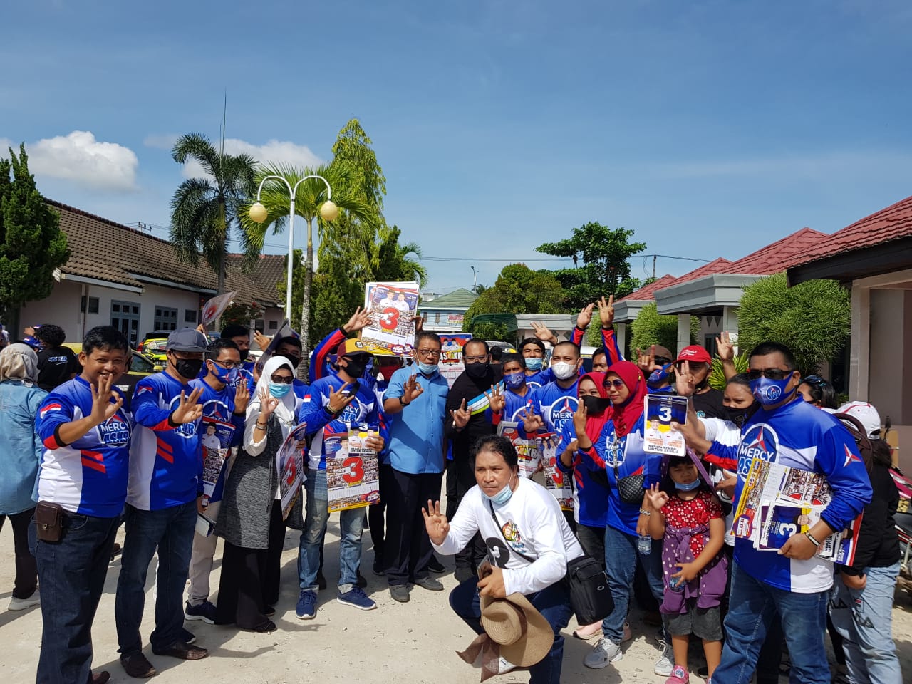 WARTAKUTIM.CO.ID,SANGATTA – Ratusan relawan dan puluhan kelompok organisasi kemasyarakatan pendukung pasangan calon Bupati dan wakil Bupati Kutai Timur nomor urut 3 Ardiansyah Sulaiman-Kasmidi Bulang (ASKB) membagikan alat peraga Kampanye paslon ASKB di Kecamatan Sangatta Utara, Rabu (18/11/2020) pagi.