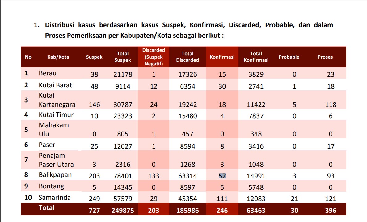 Berikut daftar penyebaran covid19 Kalimantan Timur Per Selasa 30 Maret 2021.