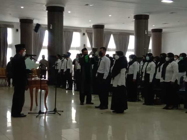 SANGATTA – Sebanyak 156 Aparatur Sipil Negara (ASN) baru dilingkungan Pemerintah Kabupaten Kutai Timur (Pemkab Kutim) dilantik dan diambil sumpah/janji dalam jabatan fungsional. Prosesi dimaksud dipimpin Bupati Kutim H Ardiansyah Sulaiman, diruang Akasia, Gedung Serba Guna (GSG), Bukit Pelangi, Kamis (29/4/2021).