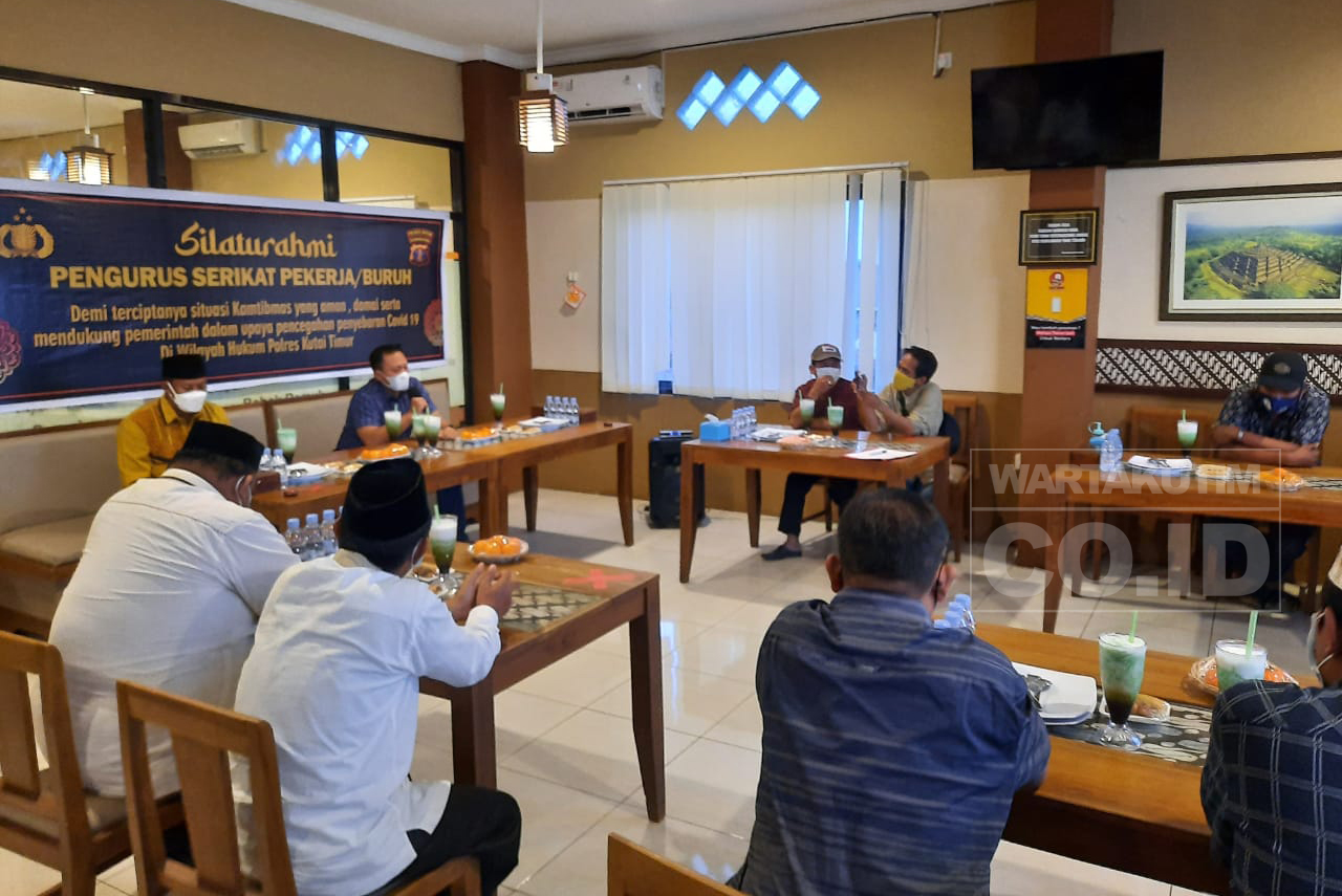 WARTAKUTIM.CO.ID, SANGATTA – Polres Kutai Timur jalin silaturahmi dengan para Pengurus Serikat Pekerja atau Buruh yang ada di Kutim. Kegiatan tersebut digelar di di Rumah Makan Bebek Pak Ndut Jl. Yos Sudarso IV Teluk Lingga Sangat Utara pada, Selasa (27/04/2021) lalu.