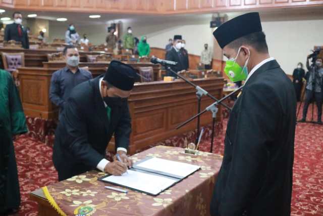 SANGATTA – DPRD Kutim menggelar rapat paripurna ke-38 masa sidang ke 1 tahun 2020-2021 tentang pemberhentian Encek UR Firgasih sebagai anggota DPRD Kutim masa jabatan 2019-2024 berdasarkan Surat Keputusan (SK) Gubernur Kaltim Nomor 171.3/07/B.PPODIII/2021 dan Nomor 171.2/08/B.PPOD.III/2021 tentang peresmian dan pengangkatan PAW Ahmad Gazali sebagai anggota DPRD Kutim sisa masa jabatan 2019-2024 di Ruang Sidang Utama Paripurna Sekretariat DPRD Kutim, Kamis (2/9/2021).