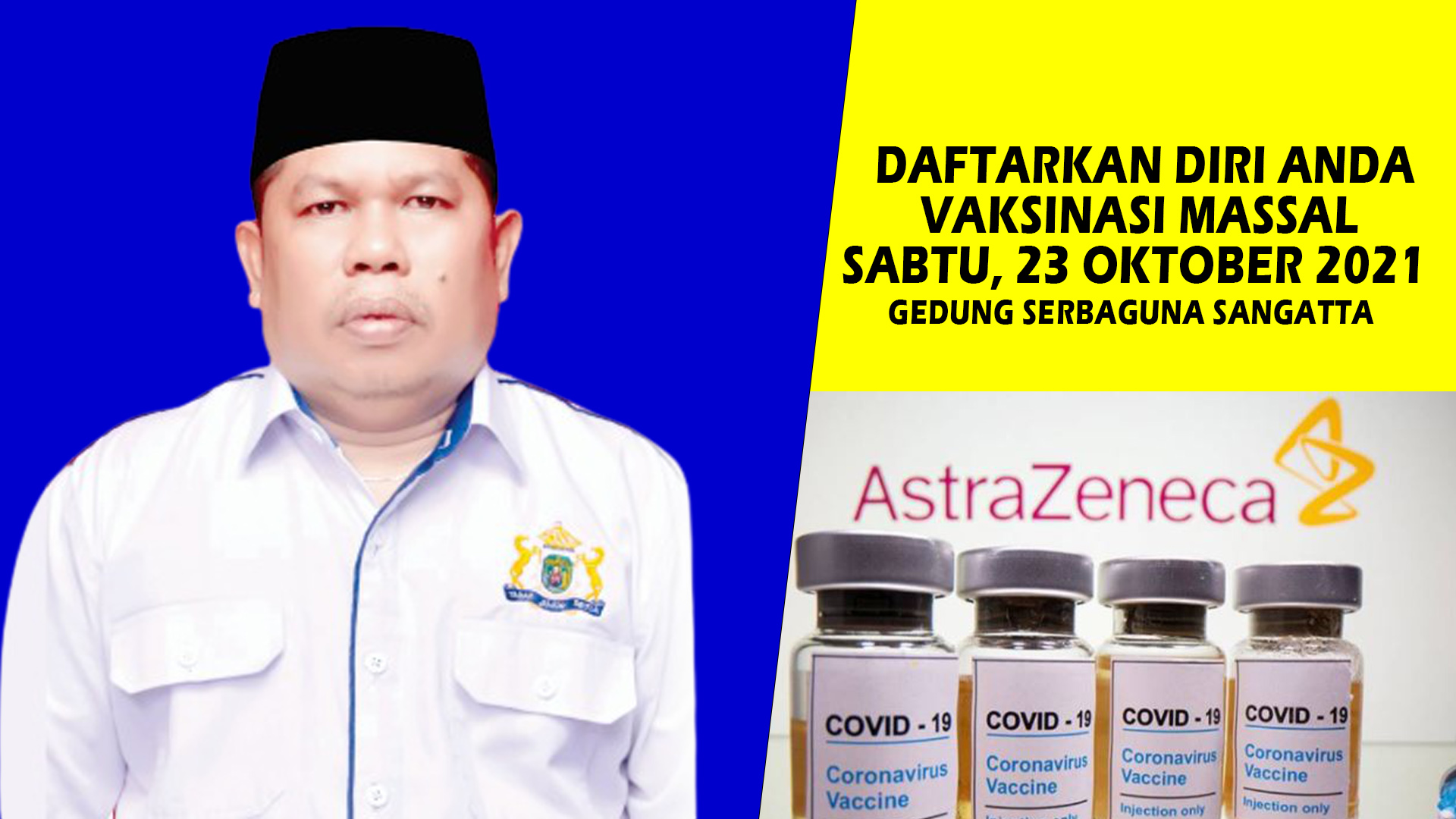 “Vaksinasi akan laksanakan di gedung serbaguna Sangatta pada Sabtu pagi hingga pukul 14.00 Wita, sebanyak dua ribu vaksin Astra Zeneca telah kami siapkan. Kegiatan vaksinasi massal ini, hasil kerja sama Kadin Kutim dan Dinkes Kutim,”jelasnya