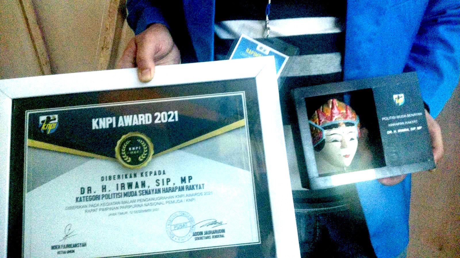 JAKARTA – Anggota Komisi V DPR RI, Irwan, meraih penghargaan sebagai “Politisi Muda Senayan Harapan Rakyat” pada puncak malam Penganugerahan DPP KNPI Awards 2021.