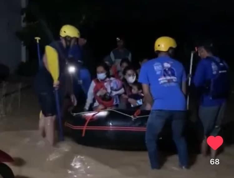 Tampak tim relawan Partai Demokrat juga melakukan evakuasi masyarakat. Target utama evakuasi adalah kalangan rentan seperti ibu hamil, balita dan lansia.