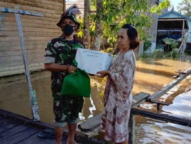 Wartakutim.co.id, Muara Ancalong – Sebagai wujud kepedulian terhadap masyarakat, Babinsa Koramil 0909-04 Muara Ancalong Sertu Agus Suratno membagikan bantuan sembako kepada warga kurang mampu yang terkena banjir di desa Kelinjau Ilir.
