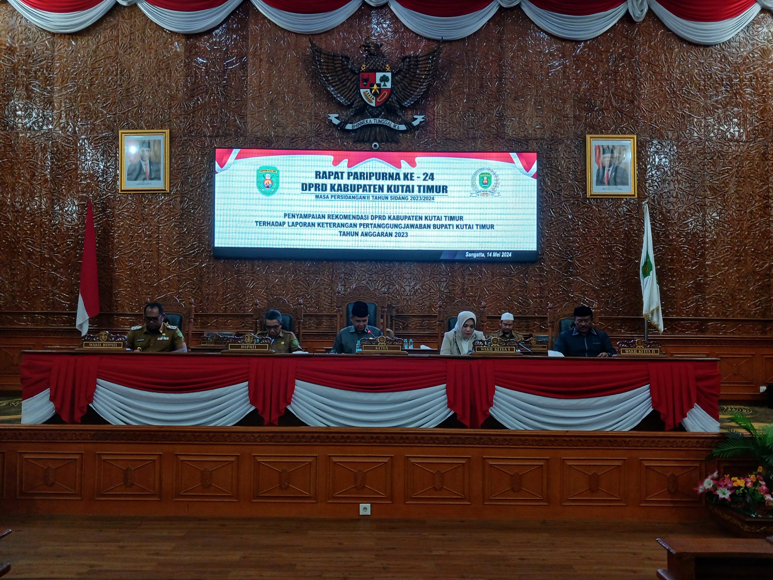 DPRD Kutai Timur Sampaikan Rekomendasi Terhadap Laporan Pertanggungjawaban Bupati dalam Rapat Paripurna