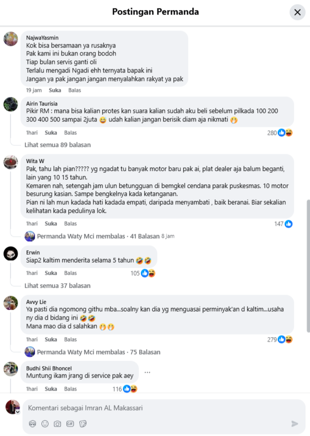 WARTAKUTIM.CO.ID, SAMARINDA – Gubernur Kalimantan Timur, Rudy Mas’ud, tengah menjadi sorotan setelah pernyataannya mengenai kendaraan bermotor bermasalah yang diduga akibat jarang diservis dan kondisi tangki BBM kota. Pernyataan tersebut menuai banyak komentar negatif dari warganet.
