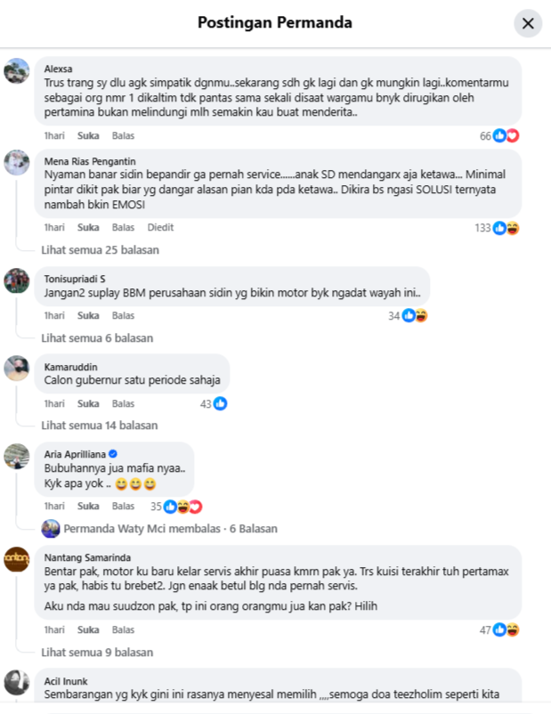 Pasalnya, keluhan masyarakat sudah lebih dahulu ramai diperbincangkan di media sosial sebelum pernyataan gubernur tersebut. Banyak pihak menilai gubernur tidak responsif terhadap permasalahan yang sedang dihadapi masyarakat.