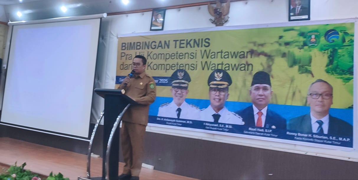 SANGATTA – Wakil Bupati Kutai Timur (Kutim), Mahyunadi, menekankan pentingnya kemampuan dan profesionalitas wartawan di tengah derasnya arus informasi yang sarat tantangan di era digital. Pesan ini ia sampaikan saat membuka Bimbingan Teknis (Bimtek) Pra Uji Kompetensi Wartawan (UKW) serta pelaksanaan UKW PWI Kutim di Sangatta, Selasa (18/11/2025).